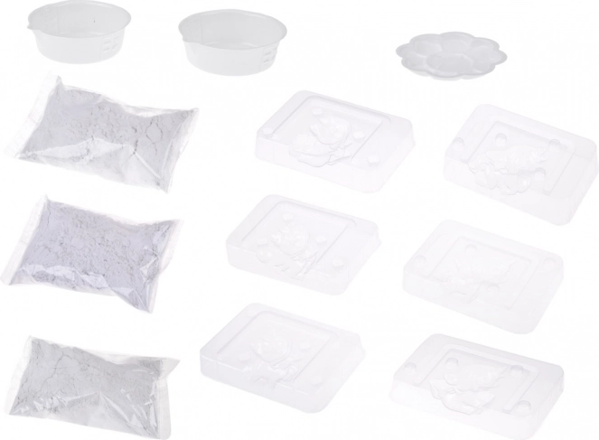 - Kompletny zestaw – formy, gips, farby, pędzle i akcesoria.