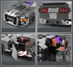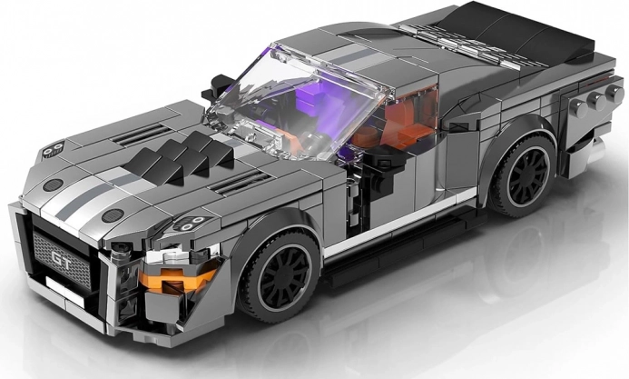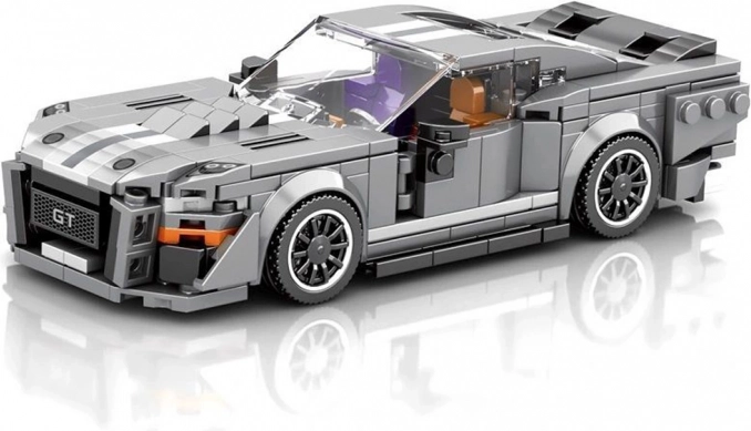 Ta techniczna konstrukcja ucieszy fanów klasycznej amerykańskiej motoryzacji. Model inspirowany legendarnym GT z lat sześćdziesiątych zachwyca muskularną sylwetką nadwozia, niską linią i wyrazistymi nadkolami, które nadają mu wyścigowego charakteru. Dwa białe pasy poprowadzone od maski przez dach aż po tył podkreślają autentyczny wyścigowy styl.
