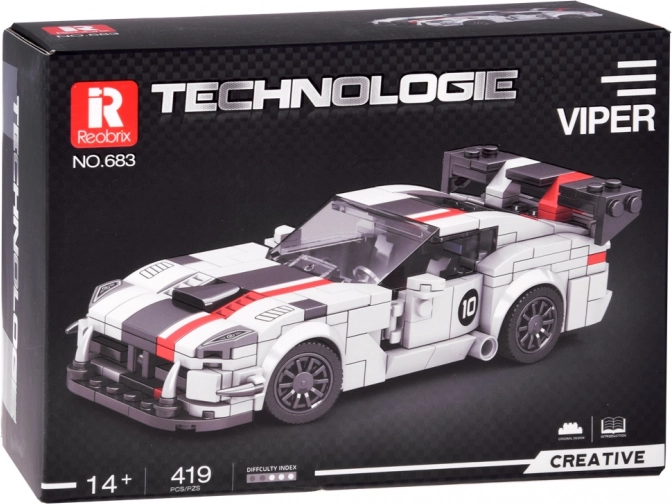 Techniczne klocki – supersamochód Biały Viper ze spojlerem, 419 elementów