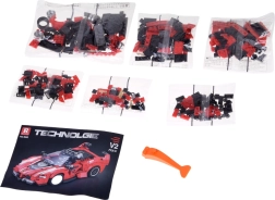 Techniczna konstrukcja czerwonego kabrioletu zachwyci wszystkich fanów szybkich aut i kreatywnego budowania. Model inspirowany supersamochodami wyróżnia się niską karoserią, wyrazistymi nadkolami i dynamicznymi liniami, które przywołują wrażenie prędkości nawet w spoczynku. Dzięki przemyślanej konstrukcji powstaje solidny, elegancki i efektowny eksponat do każdej kolekcji.