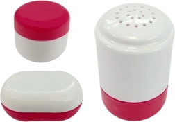 W zestawie znajdują się również dodatki, które poszerzają możliwości zabawy: butelka na puder, mydła w płynie, mydelniczka, pudełkowe „mleko” i „płatki śniadaniowe”, zabawkowe sztućce dla niemowlęcia oraz naklejki do personalizacji. Zabawa wspiera małą motorykę, zabawy w odgrywanie ról i umiejętności społeczne.