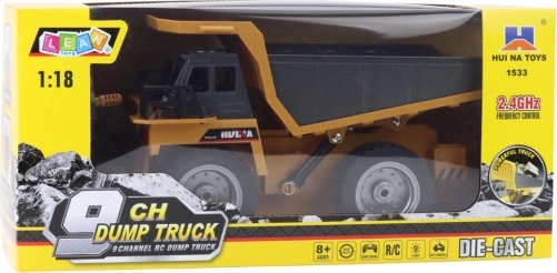 LUSTERKOWO STEROWANA wywrotka ciężarowa HUINA 1:18, 9‑kanałowa
