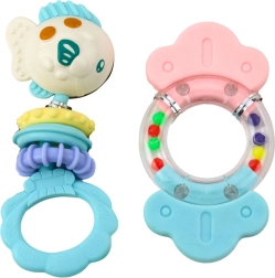 Ten wszechstronny zestaw zawiera 7 różnych grzechotek i gryzaków, z których każdy element ma swoją funkcję. Grzechotki po potrząśnięciu wydają delikatne, przyjemne dźwięki, natomiast gryzaki masują dziąsła i zmniejszają dyskomfort podczas wyrastania pierwszych ząbków. Ergonomiczne kształty są dostosowane do małych dziecięcych rączek dla łatwego chwytu i rozwoju koordynacji oko–ręka.