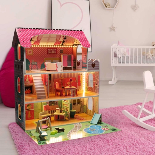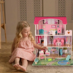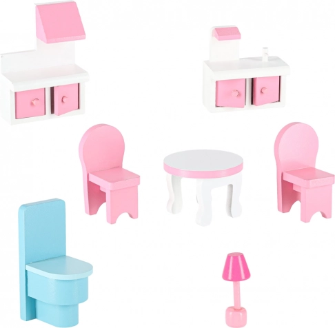 Idealny jako prezent dla dzieci, które kochają fantazję, zabawy w odgrywanie ról i aranżowanie mebli. Różowo-biała kolorystyka z subtelnymi detalami świetnie pasuje do pokoju dziecięcego, wspiera małą motorykę i wyobraźnię.