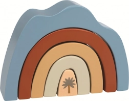 Ten wysokiej jakości drewniany zestaw 4 w 1 oferuje dzieciom różnorodne aktywności: przesuwanie koralików w labiryncie, sortowanie kształtów do walca, układanie tęczowych łuków według wielkości oraz odkrywanie elementów na activity boardzie. Zabawki w delikatnych pastelowych kolorach z uroczymi motywami wspierają koncentrację, cierpliwość i naturalną ciekawość.