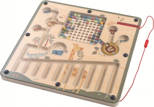 Odkryj zabawną i edukacyjną zabawkę dla dzieci od 3 lat – magnetyczną planszę do gry z motywem safari. Dzięki dołączonemu magnetycznemu długopisowi dzieci przesuwają kolorowe kuleczki w bezpiecznym labiryncie, trenując motorykę małą, koordynację ręka–oko, myślenie logiczne oraz segregowanie według ilości. Przezroczysta osłona zapobiega wysypywaniu kuleczek, dzięki czemu zabawa jest bezpieczna i bez bałaganu.