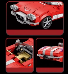 Techniczne klocki konstrukcyjne retro kabriolet z lat 50. – czerwony