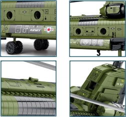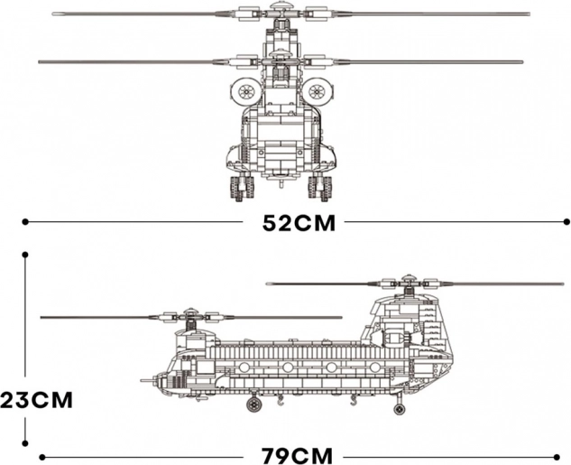 Zbuduj legendarny CH-47 CHINOOK z 1451 elementów i ciesz się realistycznymi detalami, takimi jak podwójne wirniki, otwierana rampa i drzwi oraz dopracowany kadłub. Duży model (ok. 79 × 52 × 23 cm) zapewnia świetne wrażenia z budowania, jest kompatybilny z popularnymi markami klocków i znakomicie prezentuje się w każdej kolekcji.