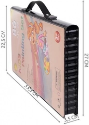 Zestaw do malowania w walizce zawiera 86 elementów i pozwala dzieciom łatwo tworzyć różnorodne kreatywne i oryginalne dzieła. Zestaw jest praktycznie zapakowany w walizce z wygodnym przenoszeniem i jest odpowiedni dla dzieci od 3 lat.