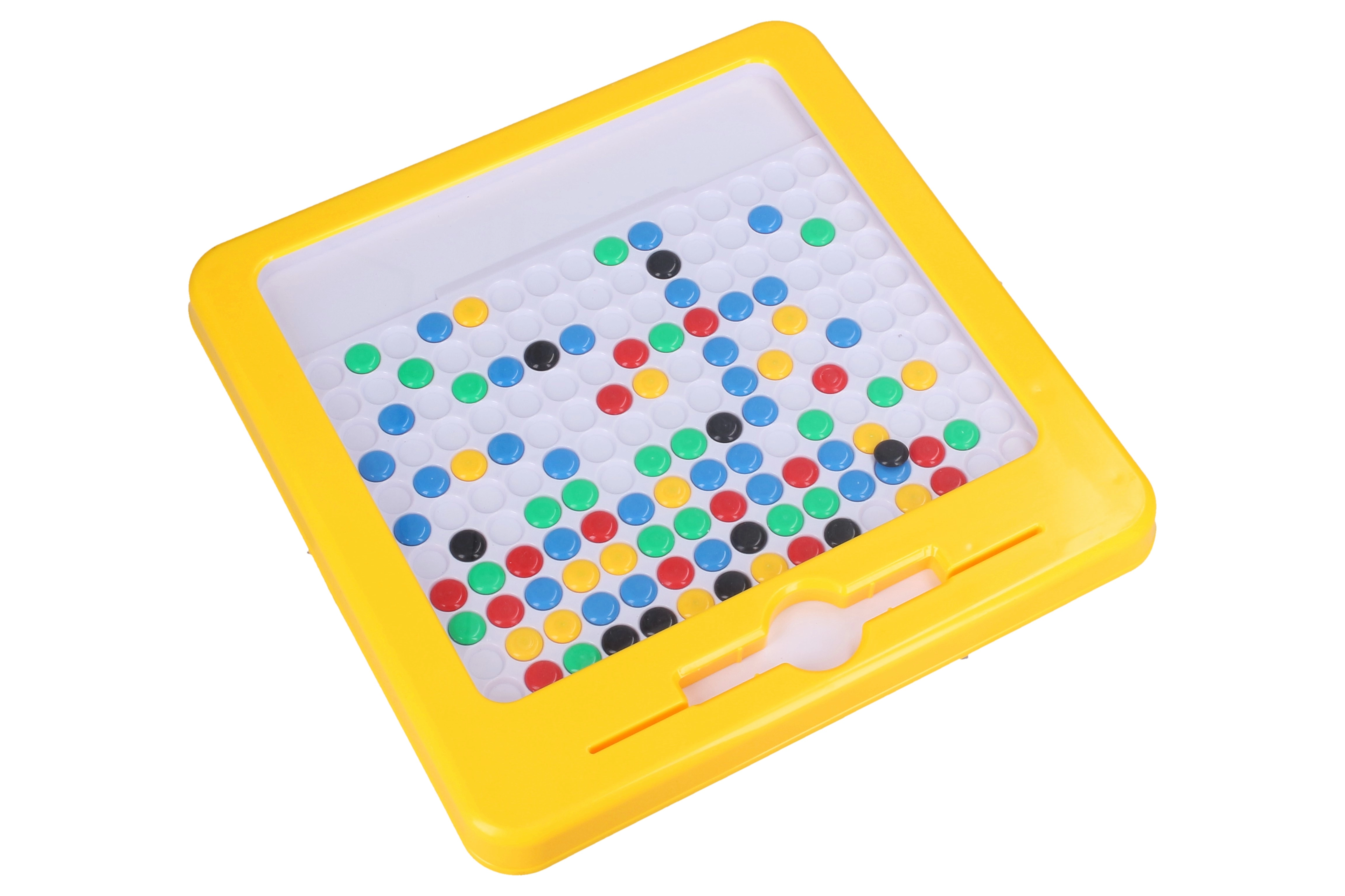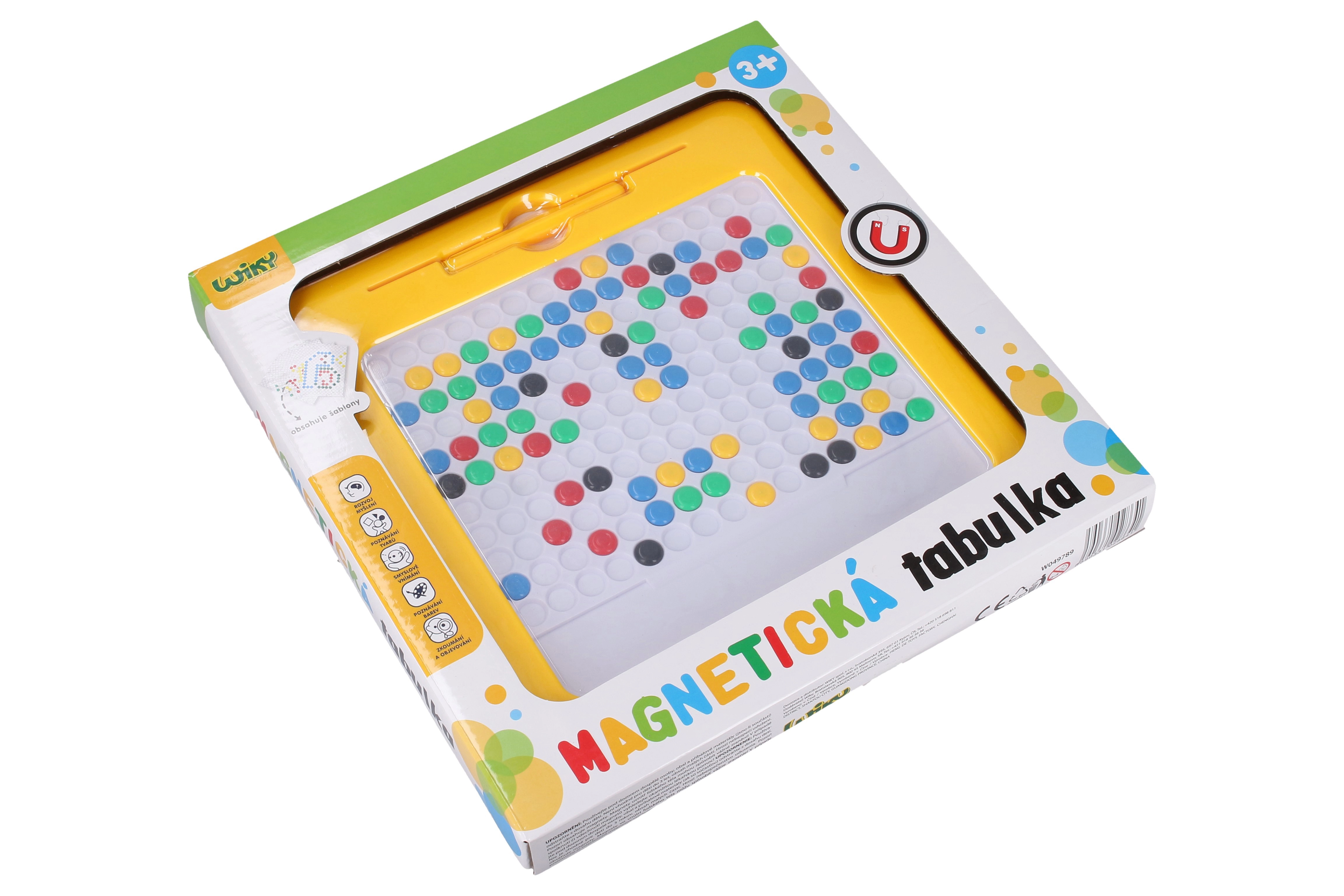 Magnetyczna tablica do rysowania 25 cm to świetna pomoc dydaktyczna, która rozwija wyobraźnię i umiejętności. Dzieci za pomocą magnetycznego ołówka podchwytują kolorowe magnesiki, przenoszą je w wybrane miejsce i układają dowolne obrazki. Dołączone szablony z różnymi motywami posłużą jako inspiracja i wyzwanie dla małych twórców.