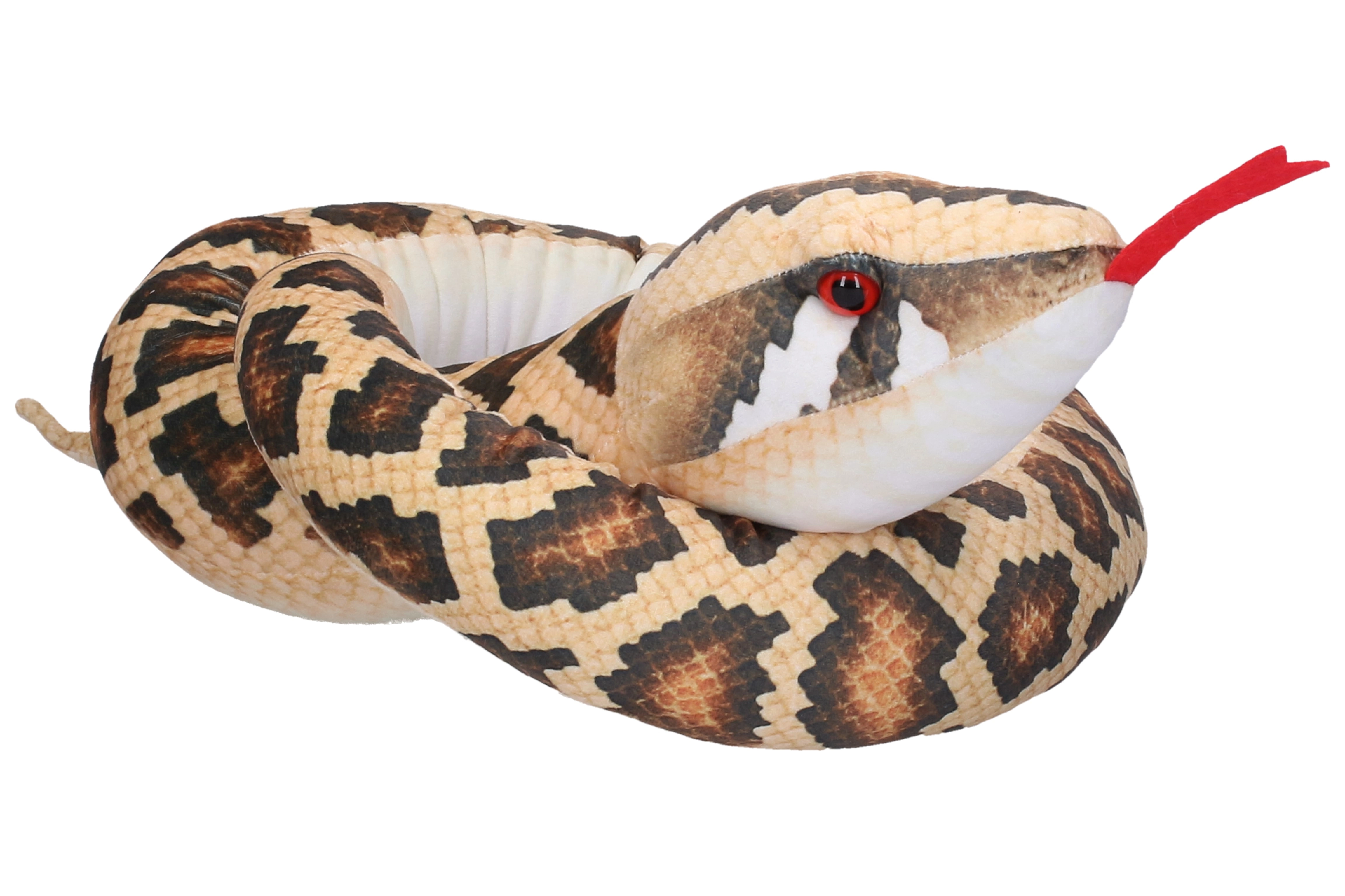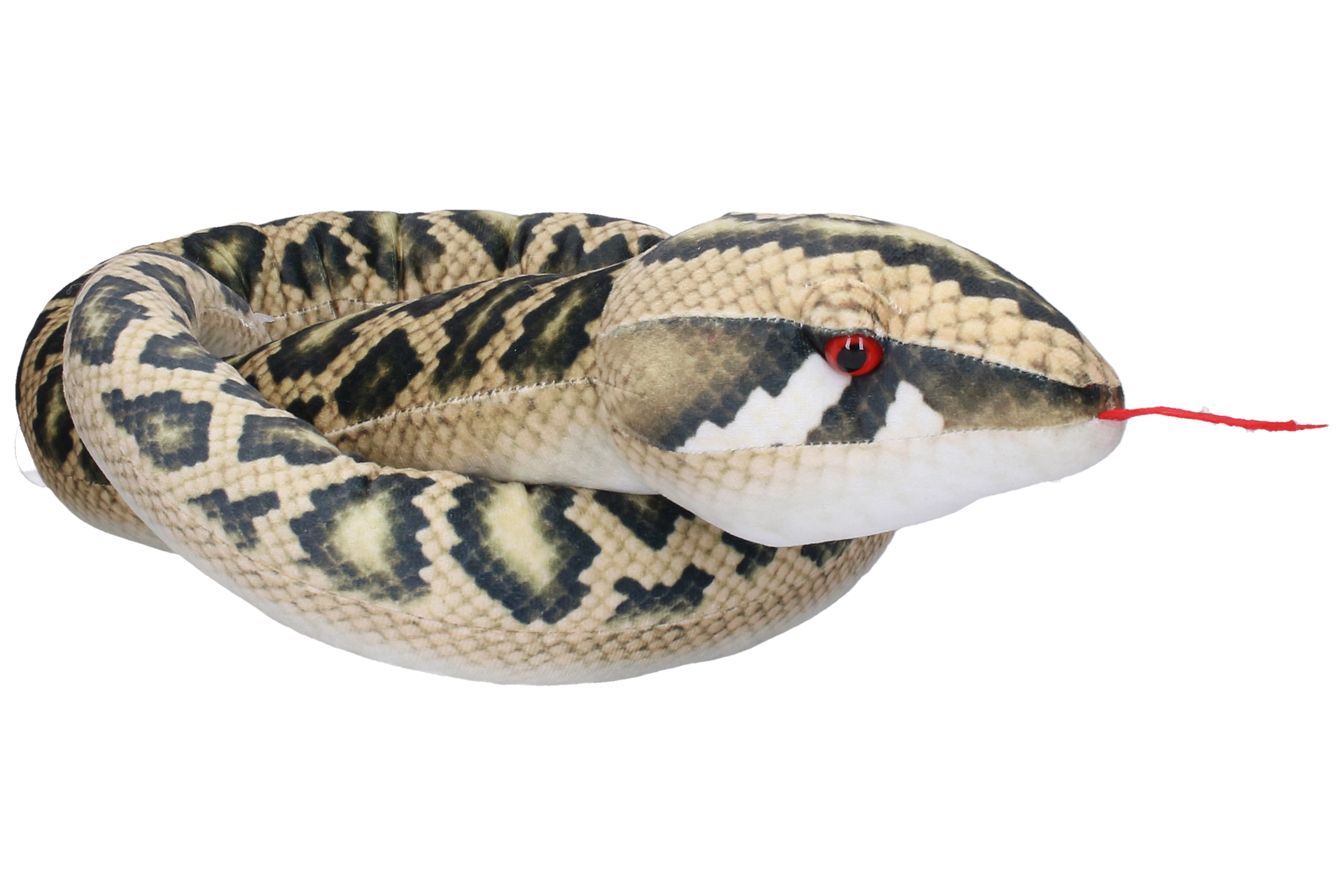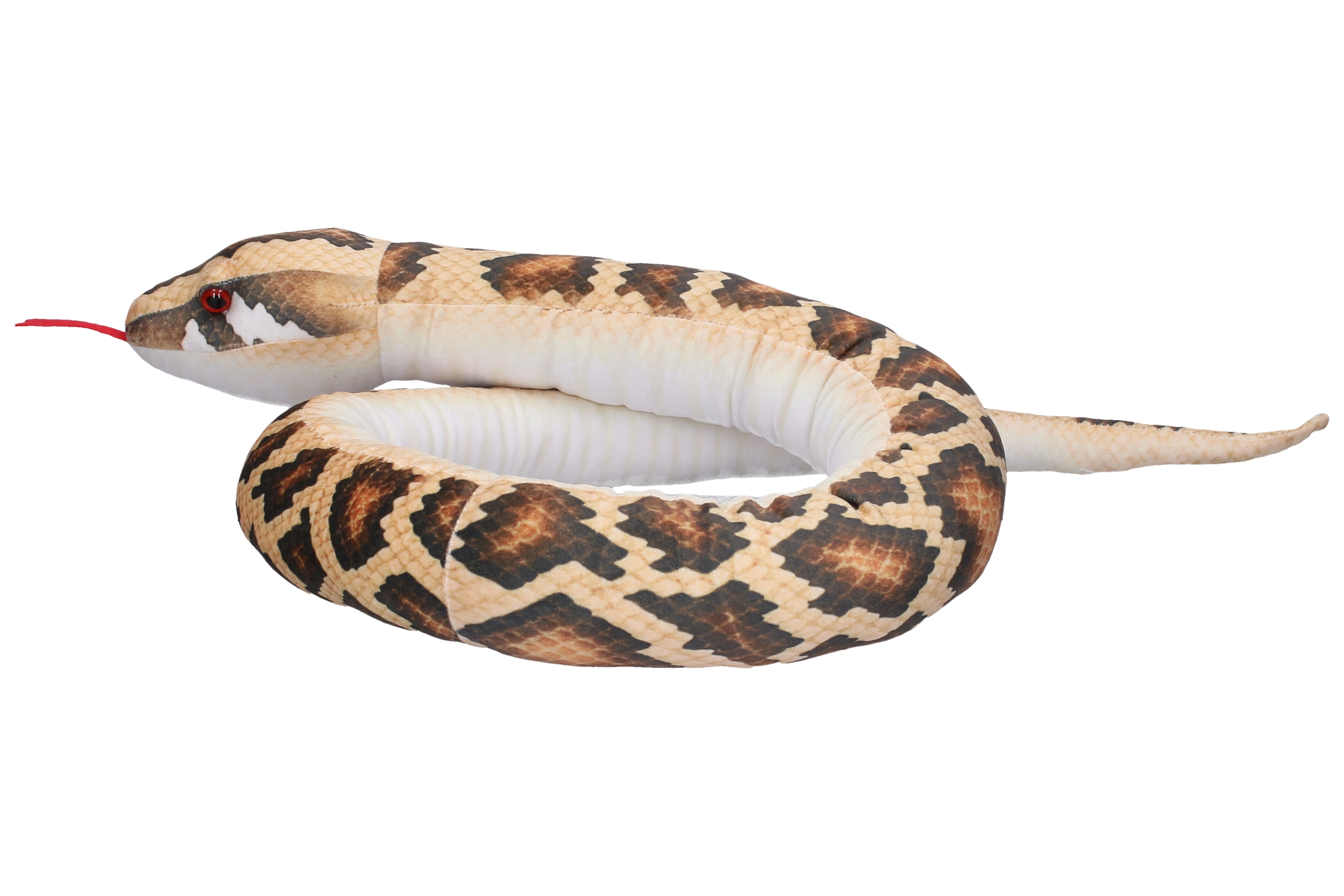 Wnieś do domu odrobinę przygody z pluszowym wężem o długości 180 cm. Jego szczegółowy nadruk łusek, wyraziste oczy i czerwony rozdwojony języczek nadają mu realistyczny wygląd, a miękkie, puszyste wypełnienie zapewnia maksymalny komfort przy przytulaniu.