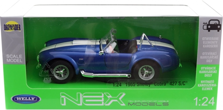 Kolekcjonerski model Shelby Cobra 427 S/C 1:24 z konstrukcją metalowo‑plastikową, otwieranymi elementami i oryginalnym lakierem samochodowym. Idealny dla dzieci od 8 lat i kolekcjonerów.