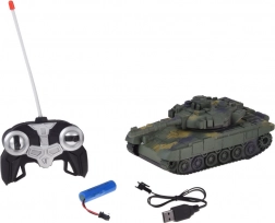 - Czołg RC, pilot z elastyczną anteną, akumulator, ładowarka USB