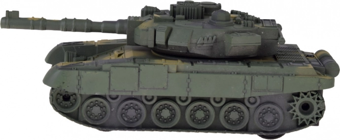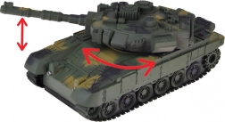 Czołg RC w zielonym kamuflażu wiernie naśladuje prawdziwą technikę wojskową i oferuje płynną jazdę do przodu/tyłu, obrót w miejscu oraz ręczne obrócenie wieżyczki o 360° z towarzyszącym dźwiękiem mechanicznym. Efekty świetlne i realistyczne dźwięki strzałów potęgują atmosferę bitew w domu i na zewnątrz.