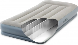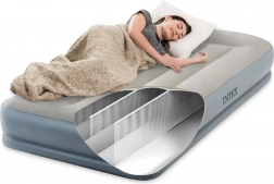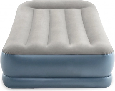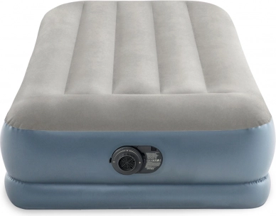 Ciesz się komfortowym snem gdziekolwiek jesteś. Ten jednoosobowy materac INTEX łączy wytrzymałe PVC z flockowaną (welurową) powierzchnią, która jest przyjemna w dotyku i mniej się ślizga. Zintegrowana elektryczna pompka oszczędza czas i wysiłek – w kilka minut jest gotowy do użycia.