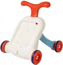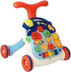 Interaktywny pchacz 3w1 towarzyszy dziecku od 6. miesiąca podczas siedzenia i zabawy aż do pierwszych samodzielnych kroków. Odłączany panel można używać osobno w łóżeczku, na podłodze lub na dołączonym stoliku. Dzięki funkcjom świetlnym i muzycznym, klawiszom Do–Re–Mi oraz wielu elementom dotykowym dzieci naturalnie rozwijają słuch, wzrok i małą motorykę.