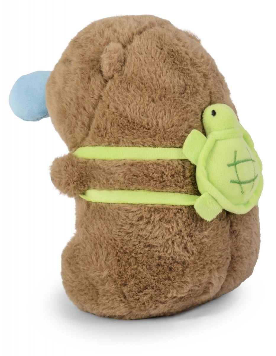 Kapibara nosi na plecach miękkiego zielonego „żółwiaka”, który nadaje zabawce wyjątkowy charakter i wspiera tworzenie fantazyjnych historii.
