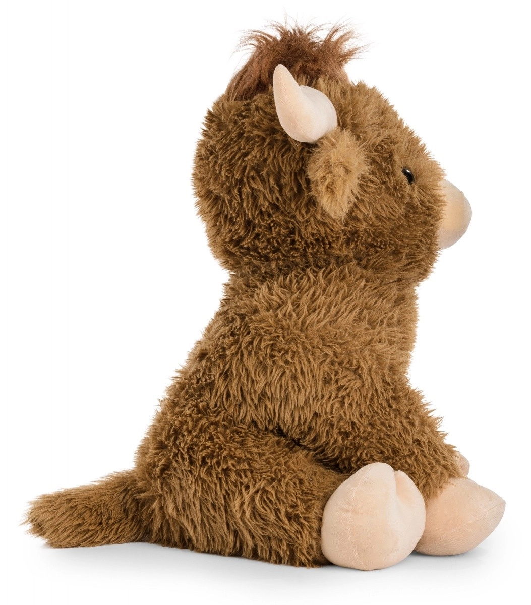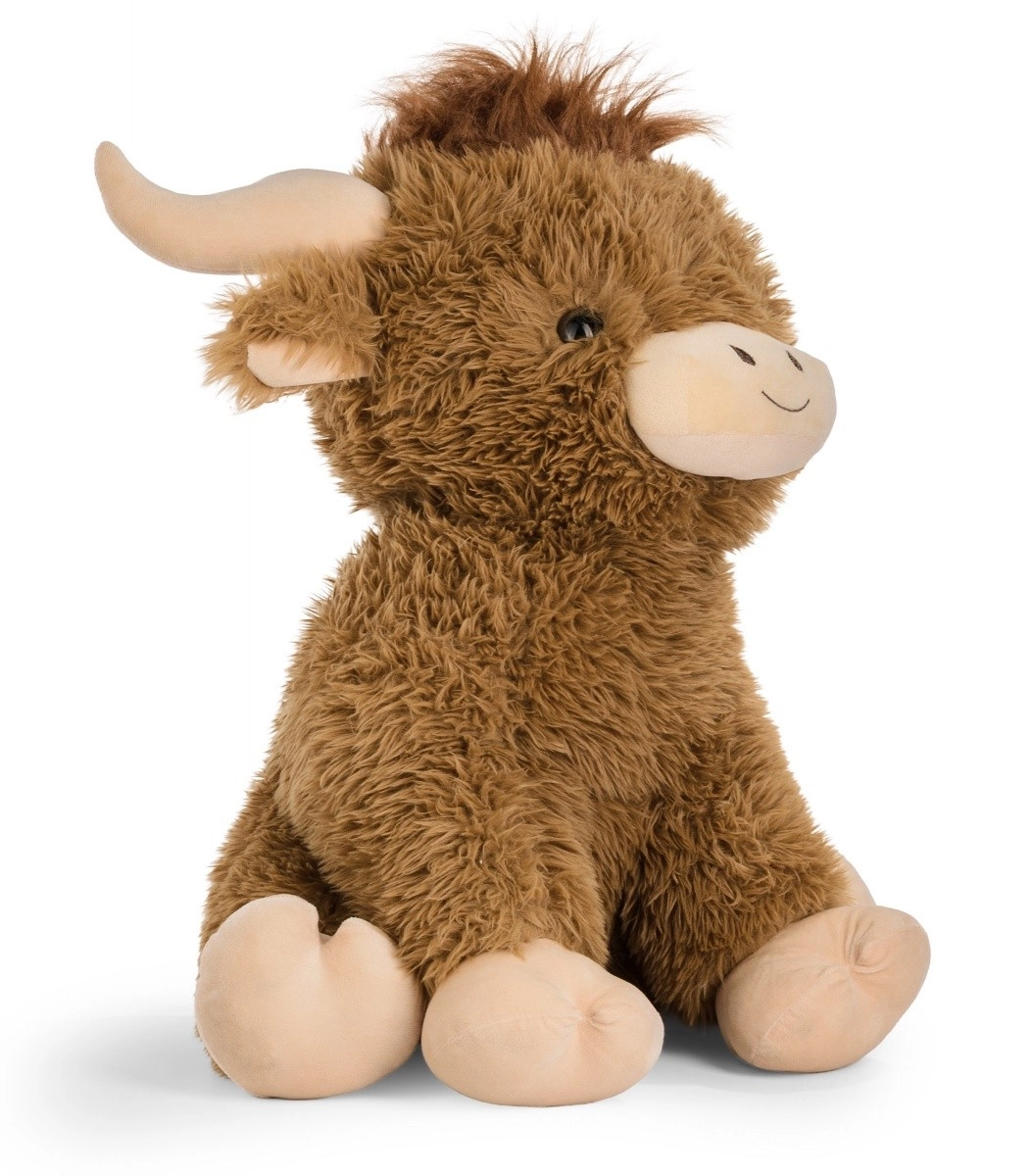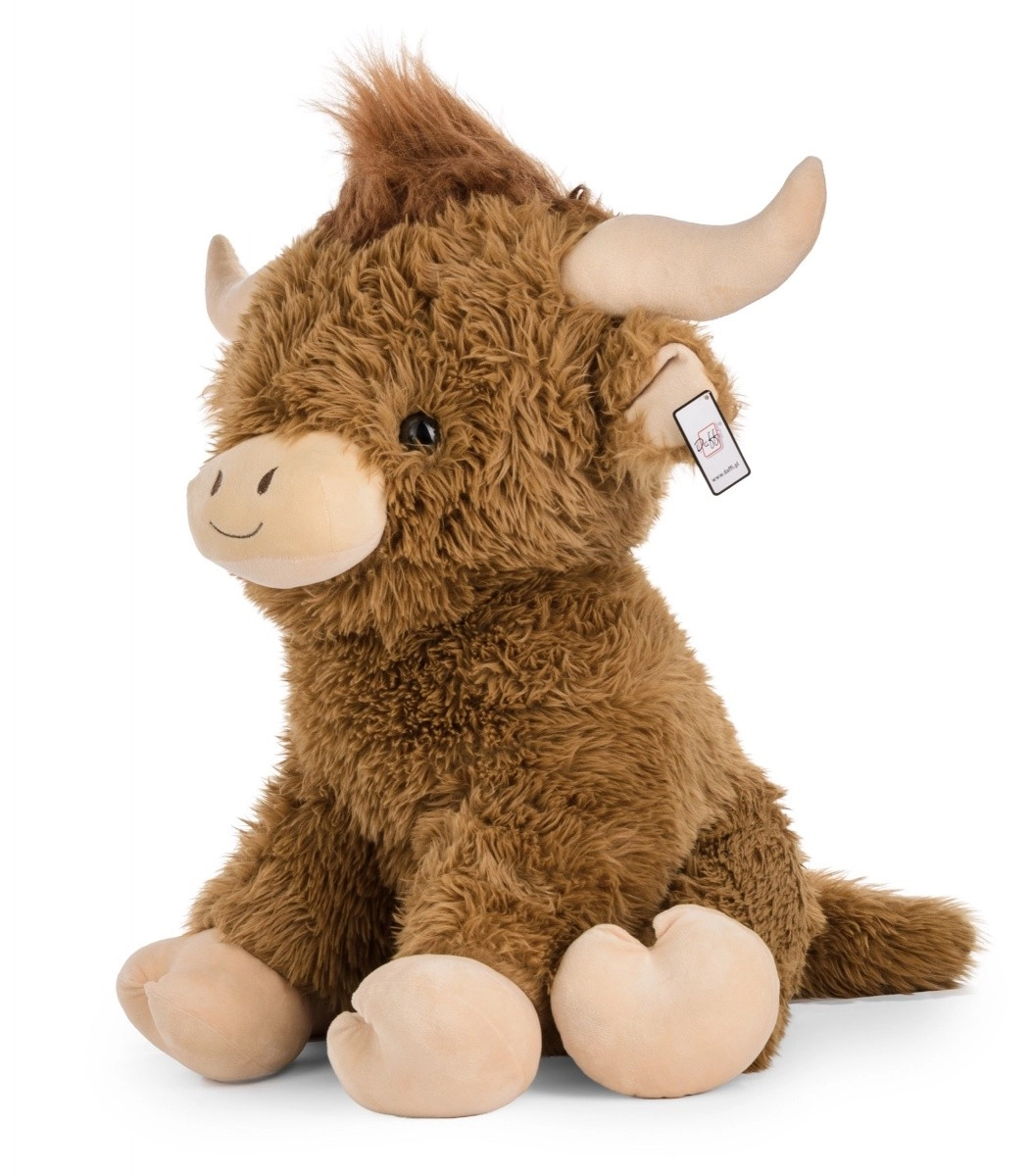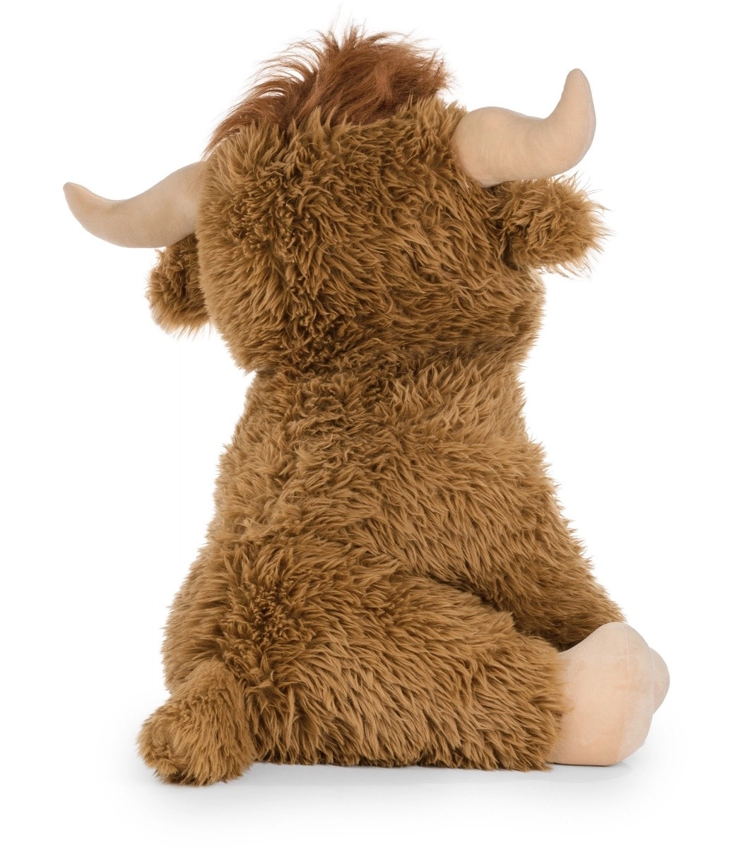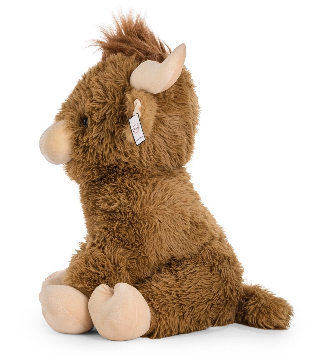 Ta pluszowa krówka Highland zachwyca długą puszystą sierścią, delikatnymi rogami i miłym uśmiechem. Wykonana jest z wysokiej jakości, mięciutkiego materiału, który aż prosi się o uściski, a stabilna, siedząca forma ułatwia ustawienie jej na łóżku, półce lub kanapie.