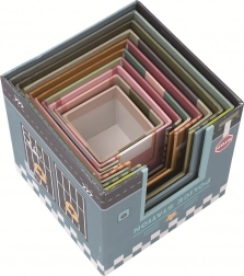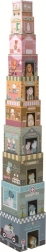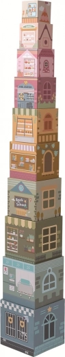 Ta urokliwa drewniana układanka w delikatnych pastelowych barwach zamieni każdą zabawę w przygodę. Każdy z 10 klocków przedstawia tematyczny budynek miejski – szkołę, szpital, księgarnię, kwiaciarnię, supermarket i inne. Dzieci mogą tworzyć wysokie wieże i różnorodne uliczki, jednocześnie trenując koordynację oko–ręka oraz orientację przestrzenną.