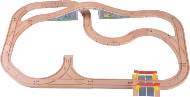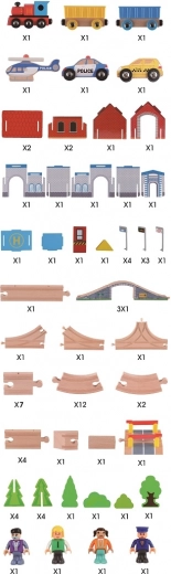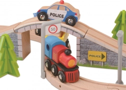 Dzięki uniwersalnym drewnianym łącznikom zestaw jest kompatybilny z większością popularnych drewnianych kolejek. Solidne wykonanie z drewna uzupełnione elementami metalowymi oraz magnetyczne łączenie wagonów zapewnia łatwą obsługę nawet dla młodszych dzieci. Zestaw jest gotowy do natychmiastowej zabawy – wystarczy ułożyć tory, rozmieścić dodatki i ruszać w drogę.