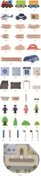 Ta nowoczesna drewniana kolejka o motywie tętniącego życiem miasta daje dzieciom wszystko, czego potrzebują do długich godzin twórczej zabawy. Zestaw zawiera niebieski pociąg z trzema wagonami, zróżnicowane tory, w tym podwyższony wiadukt, oraz przestronny dworzec z zadaszeniem. Nie brakuje radiowozu, figurek, znaków drogowych, latarni, drzew i innych dodatków, które tworzą atmosferę prawdziwego miasta.