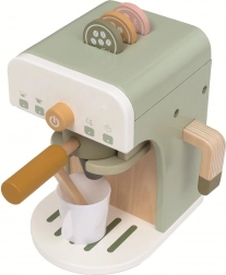 Wysokiej jakości materiały (naturalne drewno, MDF i sklejka) oraz przyjemne pastelowe barwy sprawiają, że ekspres pięknie wpisuje się w wystrój pokoju dziecięcego. Zestaw zawiera wszystko, co potrzebne do „parzenia” kawy, i inspiruje do zabaw tematycznych rozwijających komunikację i wyobraźnię.
