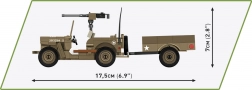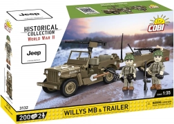 Legendarny samochód terenowy z II wojny światowej ożywa w zestawie COBI: Jeep WILLYS MB z przyczepą. Model wyróżnia się autentycznymi kształtami, wojskowym malowaniem oraz zestawem dodatków, w tym obrotowym karabinem, narzędziami i bronią dla figurek. Dzięki wysokiej jakości klockom model jest stabilny i nadaje się do intensywnej zabawy oraz do ekspozycji w gablocie.
