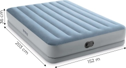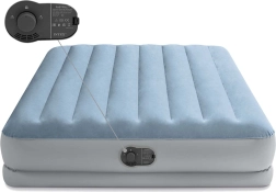 Praktyczne nadmuchiwane łóżko INTEX idealnie sprawdzi się jako tymczasowe łóżko dla gości, na działkę i w podróży. Podwyższona konstrukcja ułatwia kładzenie się i wstawanie, a welurowa powierzchnia jest przyjemna w dotyku i zapobiega przesuwaniu się prześcieradła. Zintegrowana pompa elektryczna przygotuje łóżko w około 3 minuty i równie szybko pozwoli spuścić powietrze.