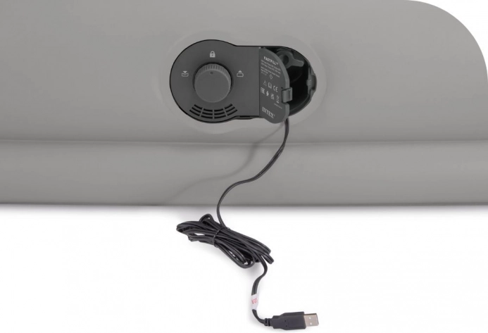 Wbudowana pompa USB 5V/2A pompuje materac w około 240 sekund. Zasilisz ją łatwo z powerbanku, ładowarki do telefonu, portu USB lub ładowarki samochodowej – idealna w domu i w podróży. Certyfikacja AirLock gwarantuje szczelność i niezawodność nawet przy częstym użytkowaniu.