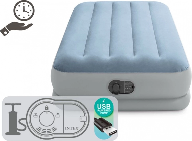 Szukasz wygodnego rozwiązania dla gości, w podróży lub na działkę? Nadmuchiwana mata/łóżko Intex łączy komfort, stabilność i mobilność. Welurowa powierzchnia jest przyjemna w dotyku i zapobiega ślizganiu się prześcieradła, a wzmocnione komory Fiber-Tech oraz rama Dura-Beam nadają łóżku sztywność bez nieprzyjemnego kołysania.