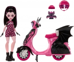 Draculaura zachwyca sportowym różowo‑czarnym strojem w kratę z detalami, takimi jak czarne rękawiczki i buty. Kask z wizjerem dopełnia wygląd i scenariusze zabawy. Zestaw jest idealny dla fanów MONSTER HIGH i wspiera zabawę fabularną, rozwój wyobraźni oraz małej motoryki.