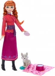 Odkryj magiczną zabawę z lalką DISNEY FROZEN Anna i uroczym wilczkiem. Zestaw zawiera ruchomą lalkę w zdejmowanej sukience, figurkę zwierzątka oraz cztery akcesoria do opieki – kocyk, legowisko, szczotkę i miseczkę z obrotowym elementem na „jedzenie” i „wodę”. Idealne do zabawy w odgrywanie ról i opiekę dla dzieci.