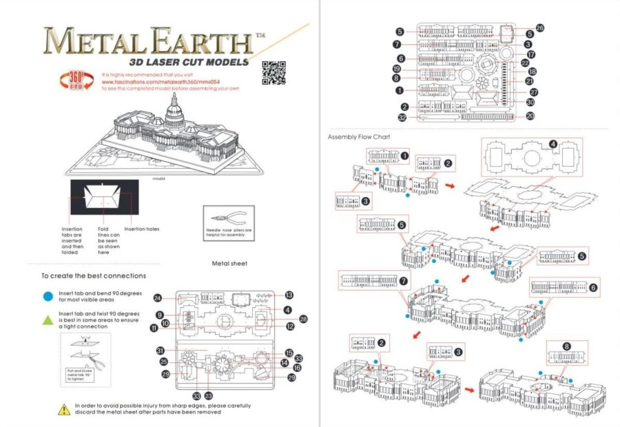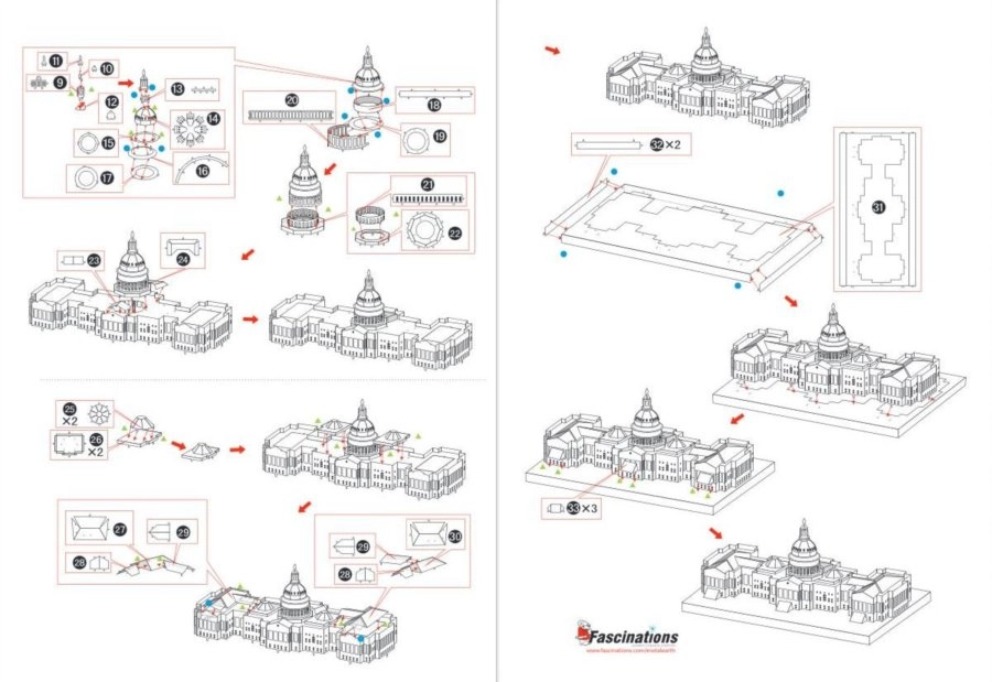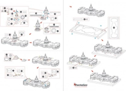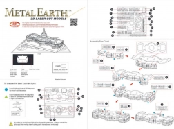 3D puzzle METAL EARTH zachwycają jakością wykonania i wiernymi detalami. Z dwóch stalowych blaszek o wymiarach 11 × 11 cm wyjmiesz elementy, które za pomocą zamków i zagięć połączysz w efektowny model Kapitolu. W efekcie powstaje elegancki, metalicznie lśniący eksponat, który ucieszy kolekcjonerów i miłośników architektury.