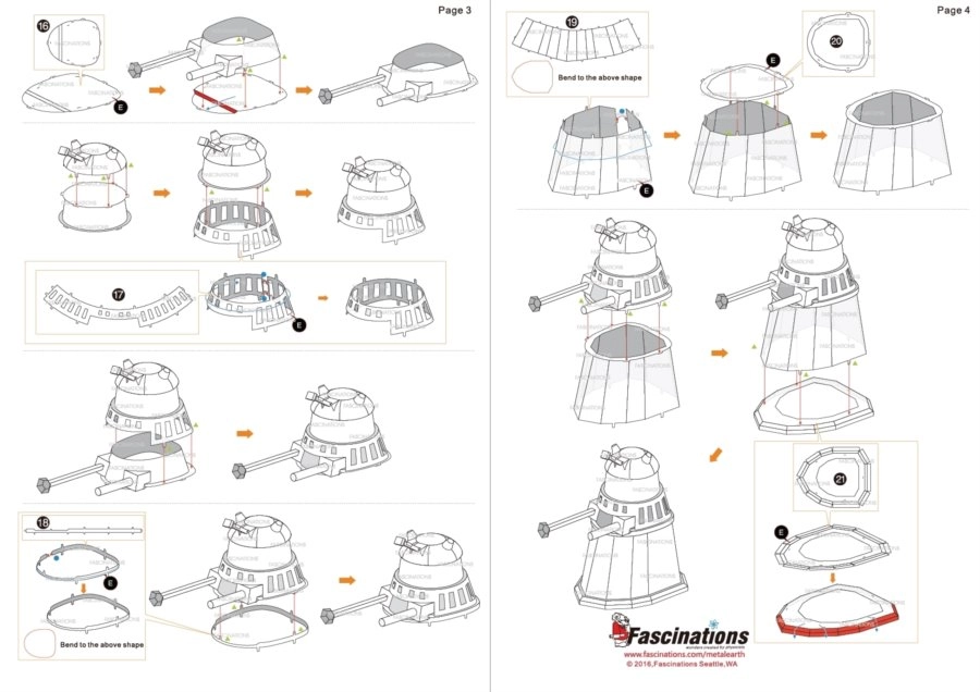 Montaż jest czysty i sprytnie zaprojektowany – poszczególne elementy łączą się za pomocą zamków z zaczepami, więc klej nie jest potrzebny. Zalecane są jedynie małe cążki oraz cienkie szczypce (brak w zestawie). Ten model dostarcza satysfakcjonującego wyzwania i jednocześnie relaksującej przyjemności z precyzyjnej pracy w metalu.