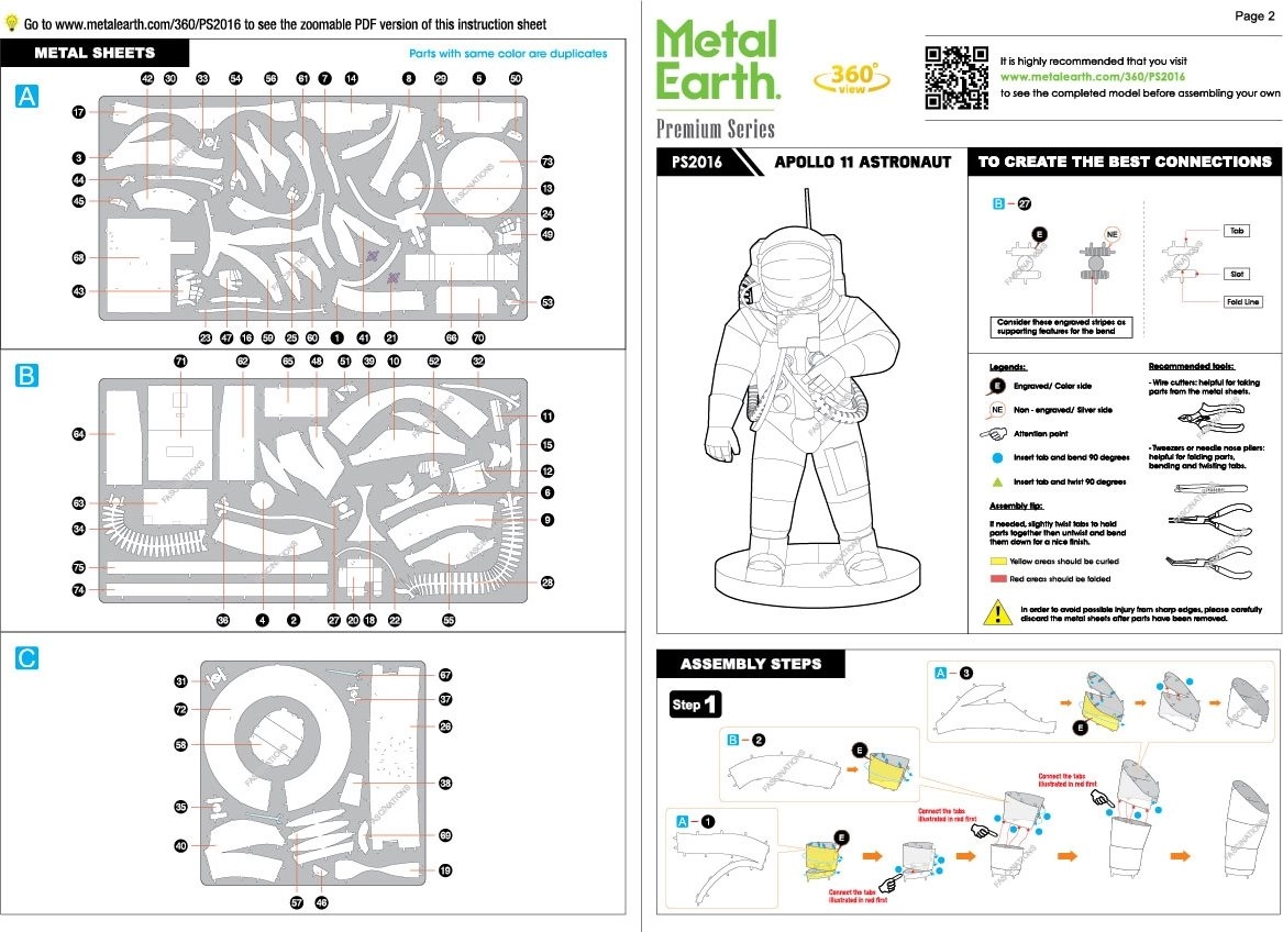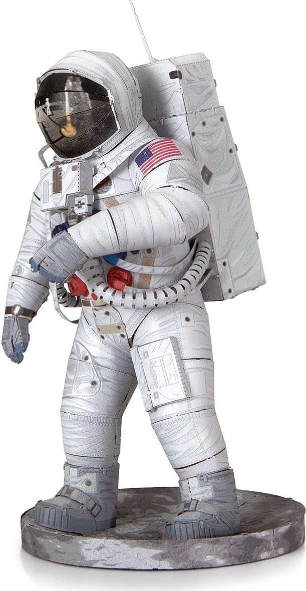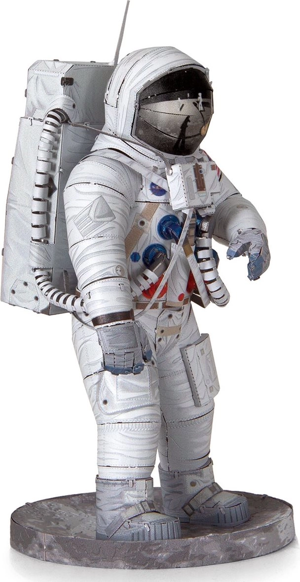 Odkryj radość z precyzyjnego modelarstwa metalowego z prestiżową serią METAL EARTH. Z płaskich, kwadratowych stalowych arkuszy złożysz realistyczną miniaturę astronauty Apollo 11 z delikatnym laserowym grawerowaniem, które podkreśla każdy detal skafandra.