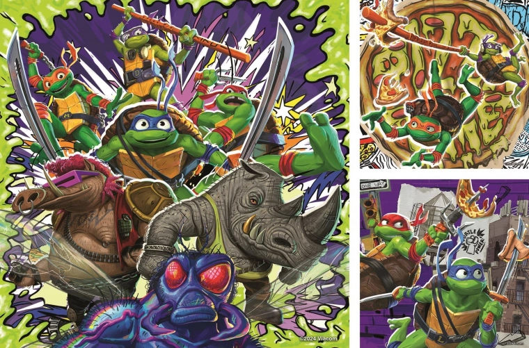 Odkryj zabawę z superbohaterami dzięki trzem różnym motywom ulubionych Żółwi Ninja. Zestaw 3×49 elementów został zaprojektowany tak, aby bawić dzieci, a jednocześnie rozwijać ich motorykę małą, logiczne myślenie i percepcję wzrokową. Dzięki precyzyjnemu wykonaniu typowemu dla RAVENSBURGER elementy idealnie do siebie pasują.