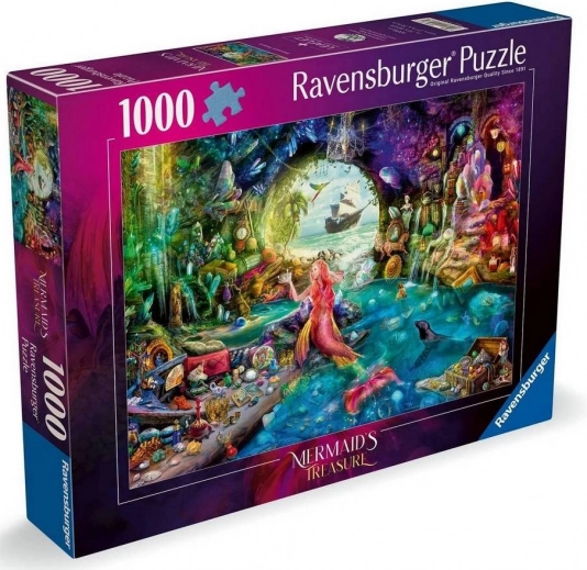 Ravensburger puzzle 1000 elementów – Tajemniczy skarb syreny. Precyzyjny wykrojnik, nasycone kolory i format 70 × 50 cm. Świetne do relaksu i oprawienia.