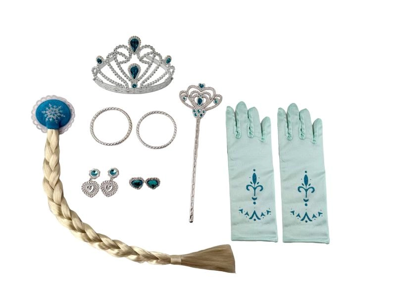 Zmień się w ulubioną księżniczkę w mgnieniu oka dzięki temu czarującemu zestawowi biżuterii z doczepianym długim warkoczem. Idealny do kostiumów, na karnawał i do zabawy w domu. Błyszcząca biżuteria, długi pleciony warkocz i łatwe zakładanie ucieszą każdą małą elegantkę.