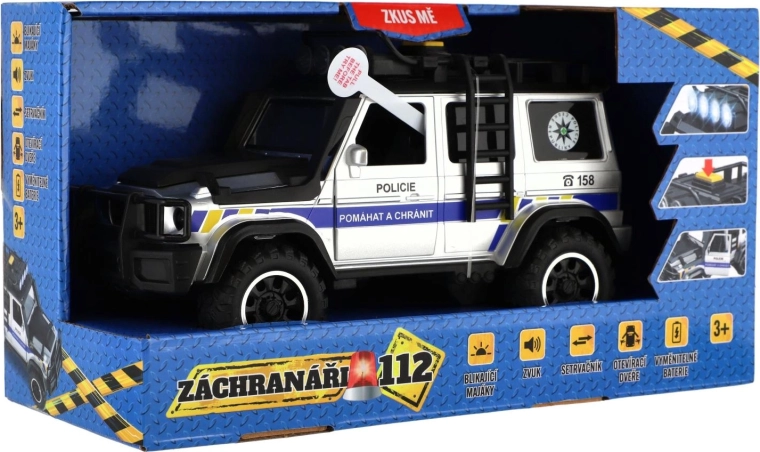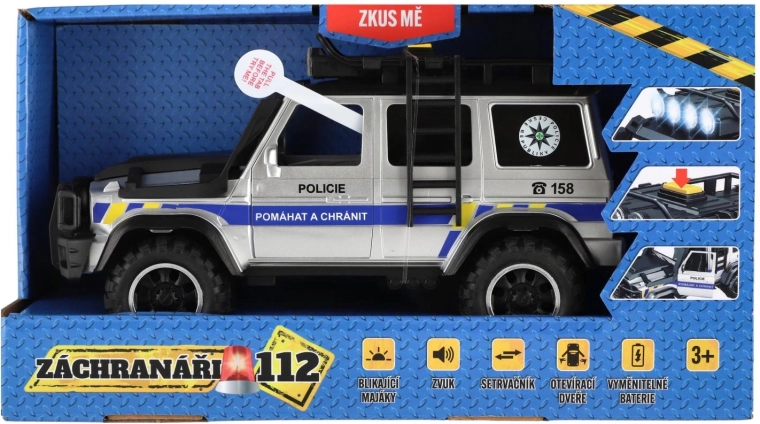 Zostań bohaterem z policyjnym samochodem terenowym Ratownicy 112! Solidny model oferuje efekty świetlne i dźwiękowe, napęd na sprężynę (pull-back/inercyjny) do szybkiego startu oraz otwierane drzwi dla jeszcze bardziej realistycznej zabawy. Idealny dla dzieci, które kochają akcję i przygodę.