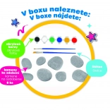 - Farby, pędzelki, kamyki (w zależności od zestawu), pudełko