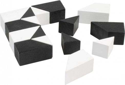 Czarno-biały tangram marki Detoa przynosi nieskończoną liczbę kombinacji i wariantów układania. Zadaniem jest ułożyć poszczególne drewniane elementy w kształt według wzoru – możliwości rozwiązań jest jednak więcej, więc zabawa pozostaje atrakcyjna nawet przy wielokrotnym graniu. Proste zasady czynią go świetnym wyborem dla dzieci i dorosłych.