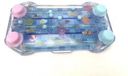 Odkryj prostą, ale niezwykle wciągającą wodną grę z motywami dinozaura, piłki nożnej i koszykówki. Wystarczy nacisnąć przyciski, wprawić wodę w ruch i trafiać kółkami lub piłeczkami w tarcze. Świetny relaks zawsze i wszędzie.