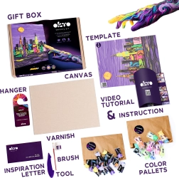 Ten zestaw plastyczny OKTO poprowadzi Cię krok po kroku przez technikę malowania masą modelarską. Stworzysz efektowny, plastyczny obraz z ikonicznym motywem Skyline miasta NOWY JORK, który ozdobi Twoje wnętrze lub ucieszy jako osobisty prezent.