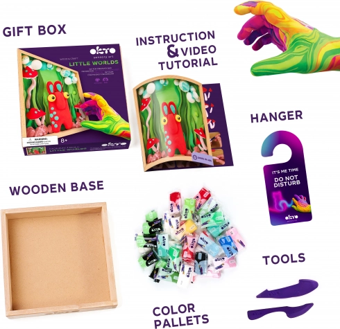 Stwórz własną magiczną scenę ze skrzatem! Kreatywny zestaw marki OKTO zawiera wszystko, czego potrzebujesz do wykonania 3D dekoracji w drewnianej ramce 21 × 21 cm – od samoutwardzalnej masy plastycznej po lakier akrylowy i narzędzie do modelowania. Proste tworzenie według ilustrowanej instrukcji opanują dzieci i początkujący.