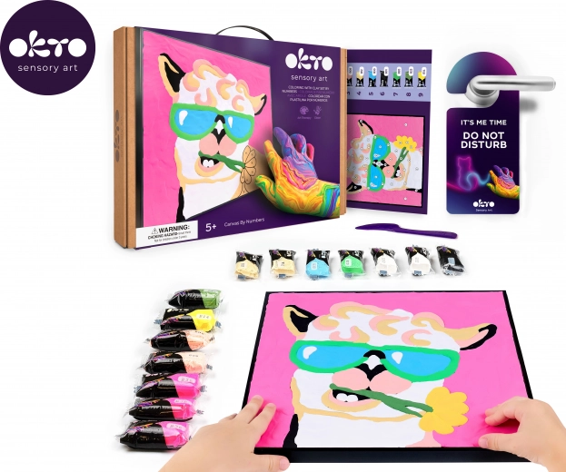 Stwórz własne kolorowe dzieło z kreatywnym zestawem malowanie masą według numerów z motywem Lamy. Idealny dla dzieci i dorosłych, którzy kochają tworzenie – zestaw zawiera wszystko, co potrzebne, oraz płótno o wymiarach 29 × 29 cm.