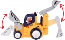 Model oferuje tryb automatyczny z funkcją „uderz i jedź” do samodzielnego poruszania się oraz tryb zdalnego sterowania z dwukierunkowym pilotem. Ruchoma przednia łyżka i przegubowe ramię z łyżką koparki uruchamiają realistyczne dźwięki. W zestawie jest także figurka kierowcy (aktywuje jazdę z dźwiękami i światłami) oraz mała piłeczka dla jeszcze większych możliwości zabawy.