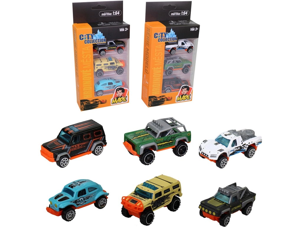 Metalowe autka 1:64 – zestaw 3 sztuki, 2 warianty