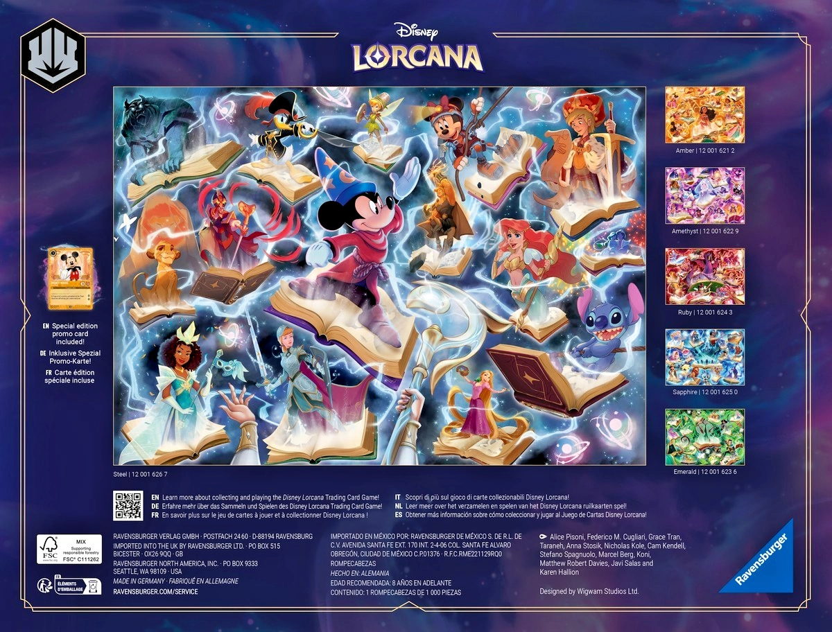 Szukasz relaksu i wyzwania w jednym? Te puzzle łączą ulubione postacie i estetykę Disney Lorcana ze sprawdzoną jakością Ravensburger, dzięki czemu będziesz czerpać przyjemność z układania od pierwszego do ostatniego elementu.