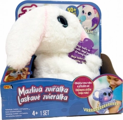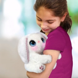 Króliczek Rozalka to idealny towarzysz do przytulania i zabawy. Dzięki sprytnym czujnikom reaguje na dotyk i interakcję – potrafi się przytulić, objąć rączkę oraz wyrażać radość i potrzeby za pomocą świecących buziek i uroczych dźwięków.