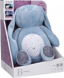 Uroczy usypiający króliczek z projekcją pomoże dzieciom spokojnie zasnąć. Na brzuszku ma świecący i obracający się projektor, który wyświetla delikatne świetlne wzory i odtwarza kołysanki. Projektor można łatwo wyjąć, obsługuje się go jednym przyciskiem i działa na 3× baterie AAA (brak w zestawie).